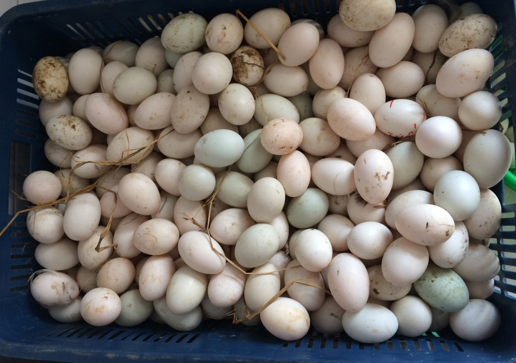 Trứng của vịt siêu đẻ cổ dài khá to và nhiều dinh dưỡng.